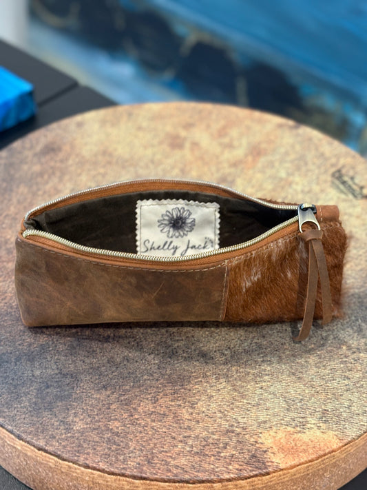 Leather Slim Pouch with Hair on Hide Accent